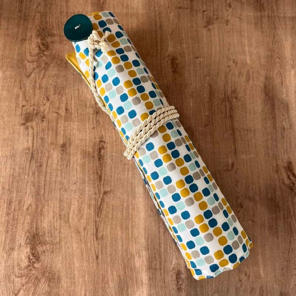 Mit Kordel zum Verschliessen der Rolle. Bietet Platz für 12 Stifte (nicht im Lieferumfang enthalten).