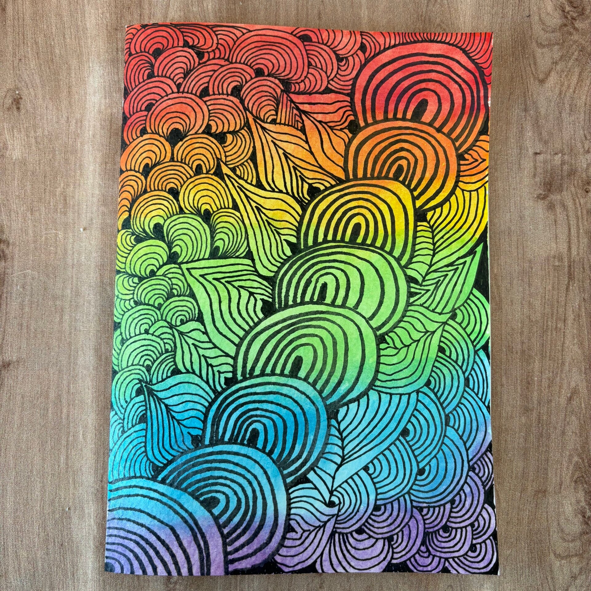 Diese Karte habe ich von Hand gemalt in Regenbogenfarben.
